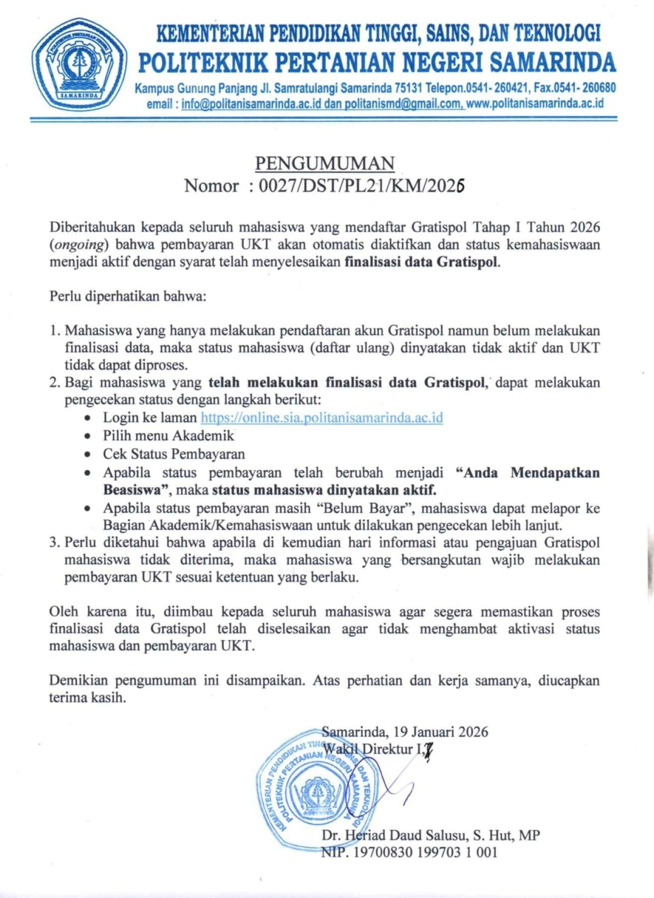 Politani Samarinda Information and Documentation Management Officer