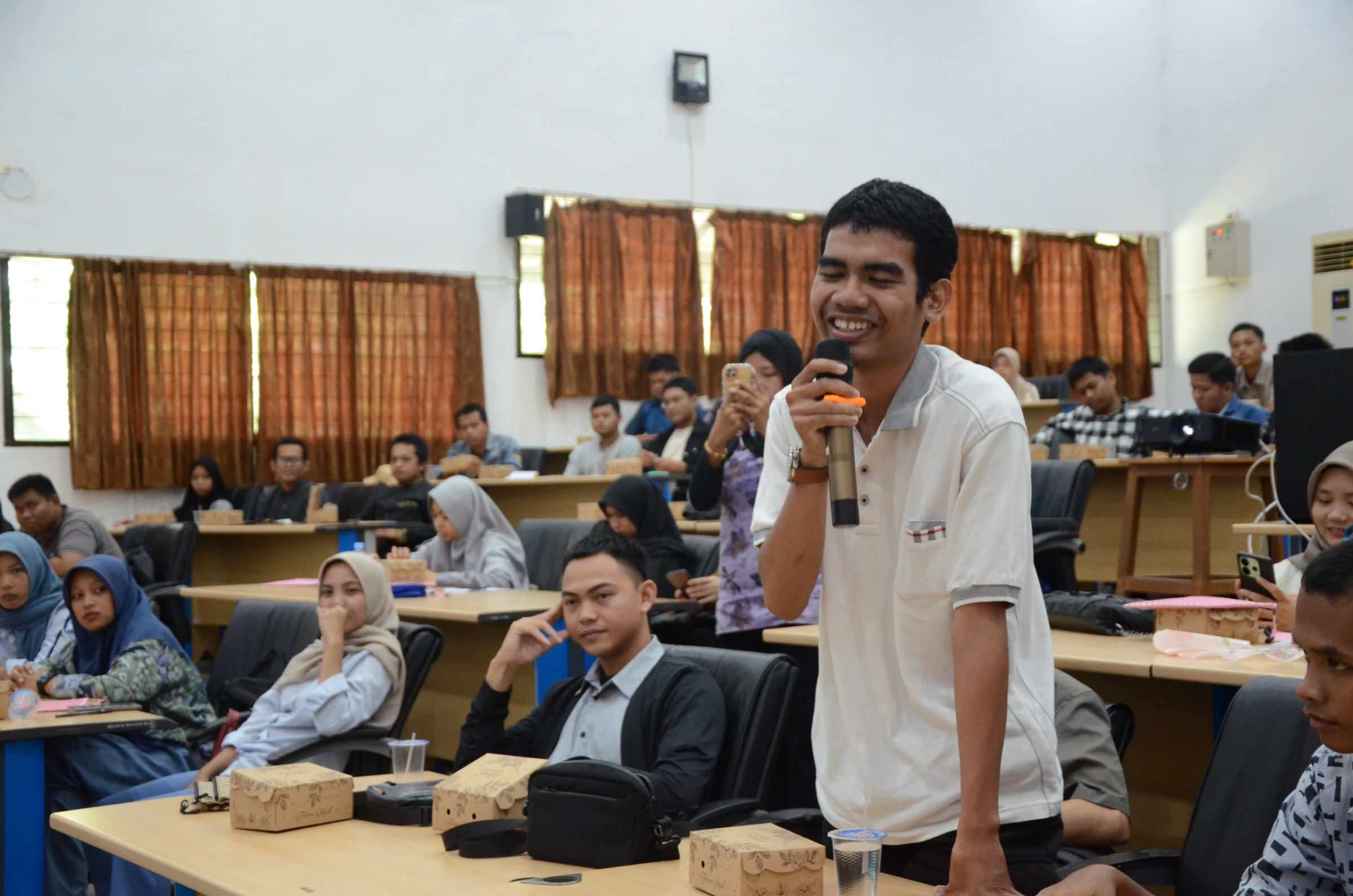 Acara ini menghadirkan Djohan Nur atau akrab disapa bang Jojo, seorang praktisi fotografi dan videografi yang bekerja untuk Tribun Kaltim, sebagai pemateri tunggal. Dengan gaya penyampaian yang lugas dan mudah dipahami, Djohan berhasil memandu peserta melalui berbagai materi fundamental, mulai dari pengenalan fungsi kamera (DSLR/Mirrorless/Smartphone), segitiga eksposur (ISO, Diafragma, Shutter Speed), teknik komposisi, hingga tips praktis mengambil gambar video yang stabil dan bercerita.